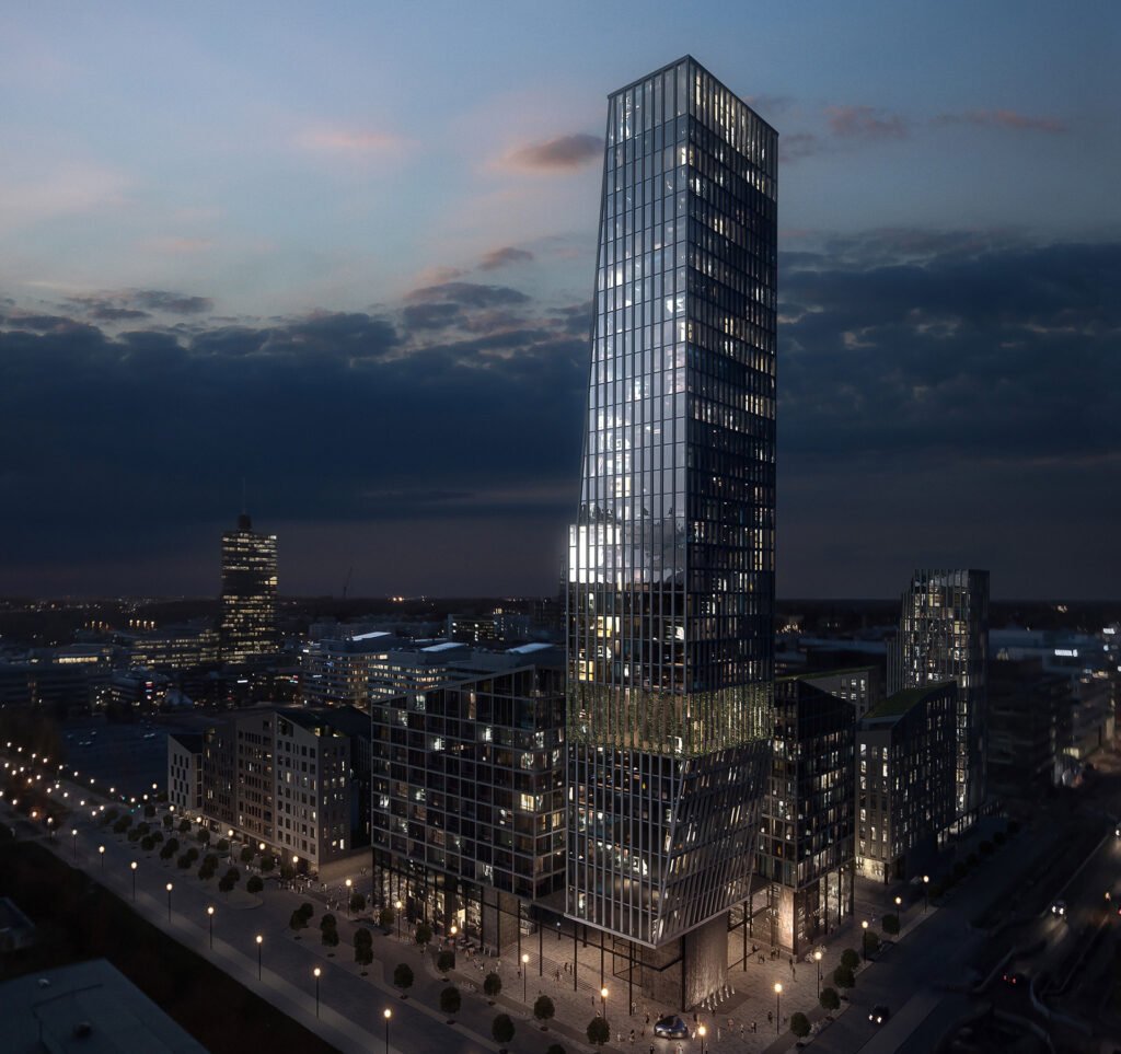 Hemicycle and offices for the Headquarters of the European Parliament including: a 750-seat hemicycle, 1133 offices for members of Parliament, 18 commission halls and catering centre and service areas.